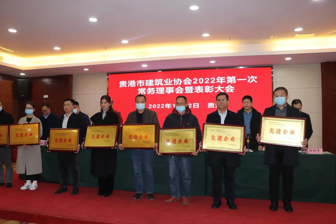 随后召开的贵港市建筑业协会2022年第一次常务理事会议由陈梦华主持。会上,贵港市建筑业协会会长梁岳俭作了2021年工作报告,会议还对贵港市建筑业先进集体和个人进行表彰。集团公司荣获“贵港市建筑业先进企业”“贵港市建筑业诚信企业”“贵港市建筑业绿色施工先进单位”称号,陈梦华总经理获“贵港市建筑业优秀企业(单位)经理”荣誉称号,莫若毅、梁锦助、陶静雯、黄文静、岑毅、邓春毅等6人获“贵港市建筑业优秀建造师”荣誉称号。