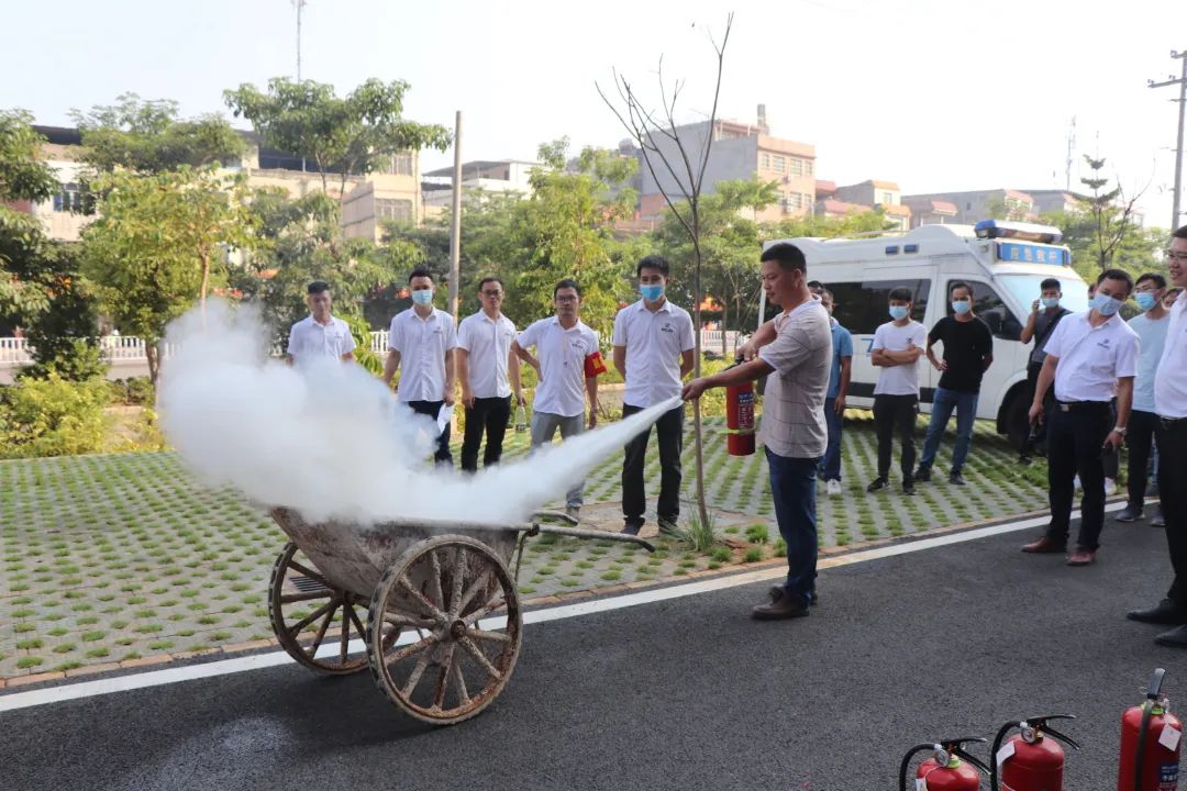 第二阶段,由副总指挥黄志刚现场演示了消防器材的正确使用方法、扑救初期火灾方式及相关注意事项,并组织员工体验现场灭火过程。