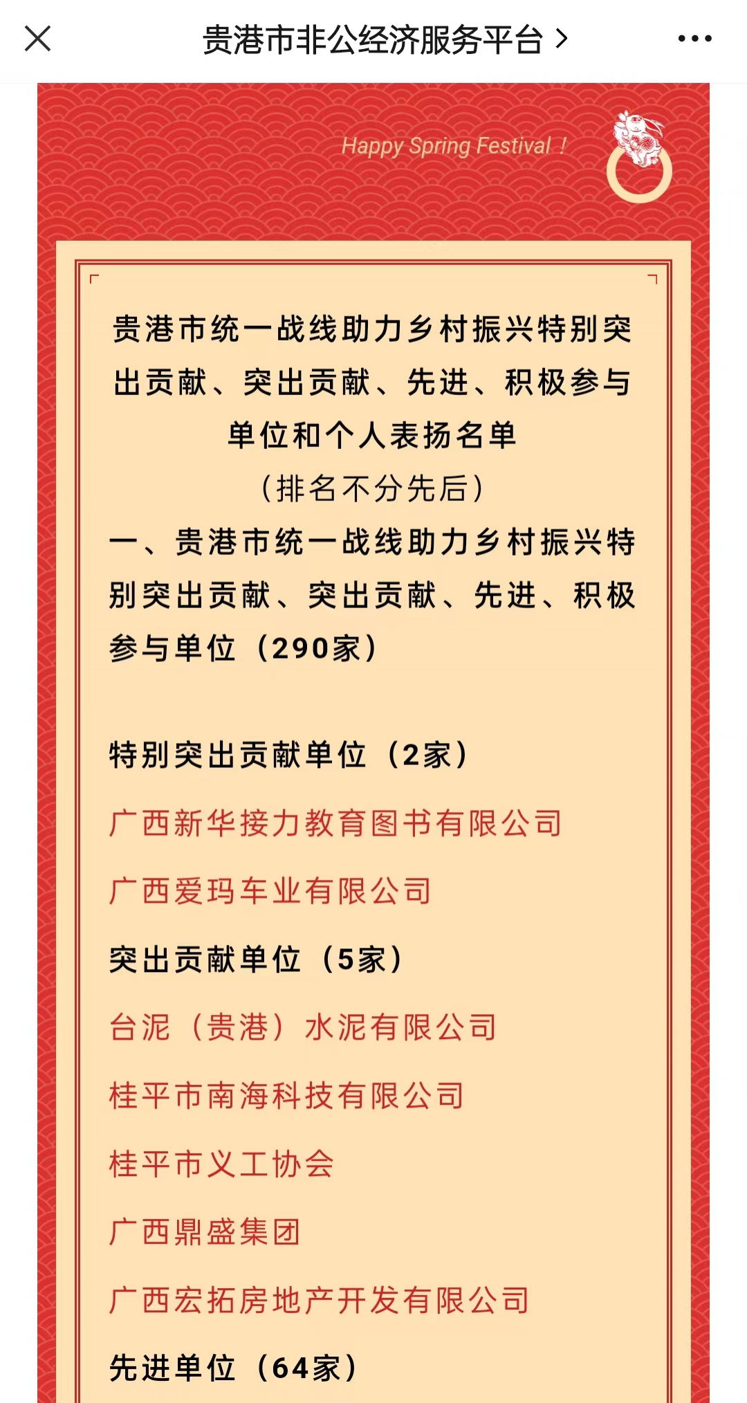 贵港市统一战线助力乡村振兴先进单位