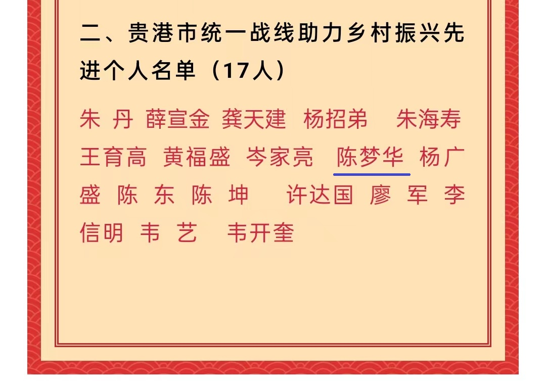 贵港市统一战线助力乡村振兴先进个人