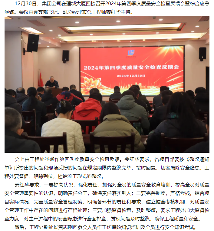 集团公司召开2024年第四季度质量安全检查反馈会暨综合应急演练