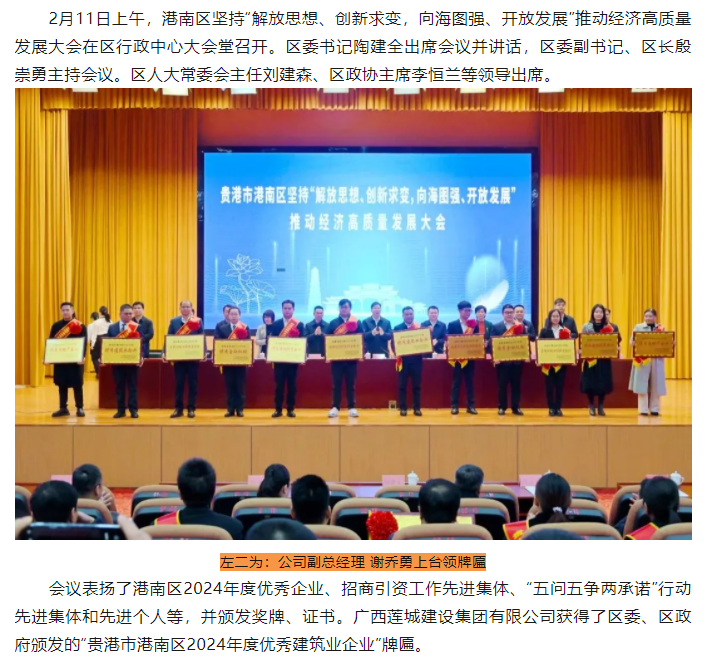 赞!yp森林舞会多人版建设集团喜获“港南区2024年度优秀建筑业企业”荣誉称号!