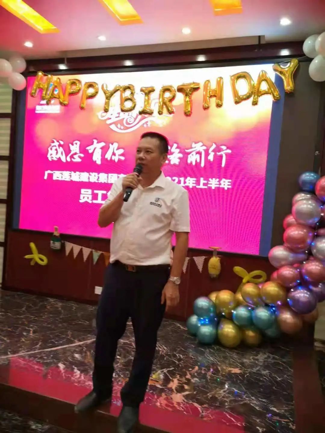 在大家热烈的掌声中,公司董事长谭燕喜向寿星们送上祝福,并表示公司的发展离不开每一位员工的共同努力,希望通过半年一次的生日会,能够让所有的员工感受到集团公司这个大家庭的温暖,更希望大家在这个大家庭里面积极工作,共创美好未来。