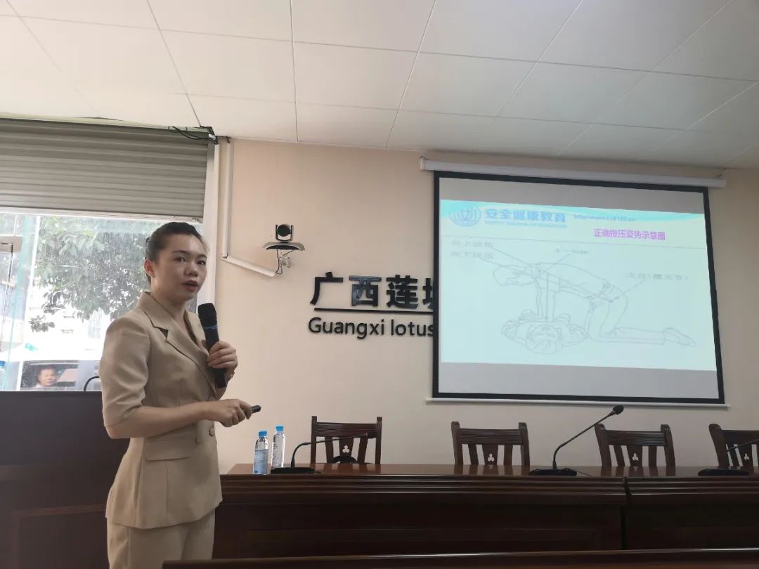 培训班上,宣教老师赵婷婷就“落实安全责任,推动安全发展”为主题,给集团公司全体人员开展公益宣教。宣教内容主要有预防和应对突发事故安全知识,如CPR急救术、突发晕倒、受伤出血等。针对办公室职工常见慢性病、职业病预防知识、干部职工“三减三健”健康生活方式、职工心理健康疏导及室内外空气污染的防护知识等作了深入浅出的详细讲解。