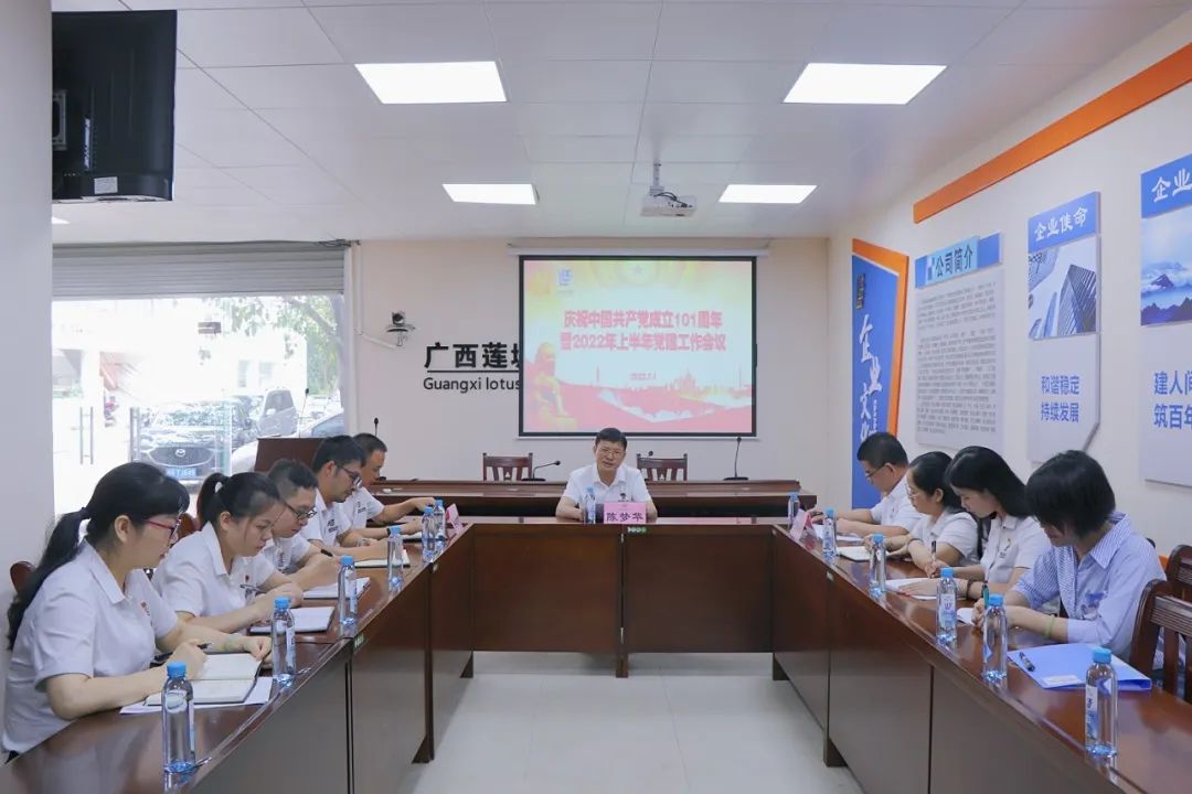 7月1日上午,集团公司在一楼会议室召开庆祝中国共产党成立101周年暨2022年上半年党建工作会议。集团公司总经理陈梦华出席会议并作重要讲话,副总经理姜红华、谢乔勇,党支部书记梁翠丽等党员同志参加。会议由副总经理谢乔勇主持。