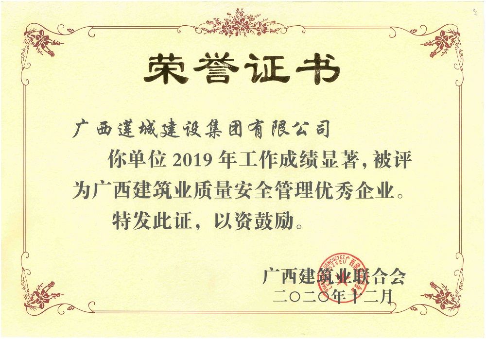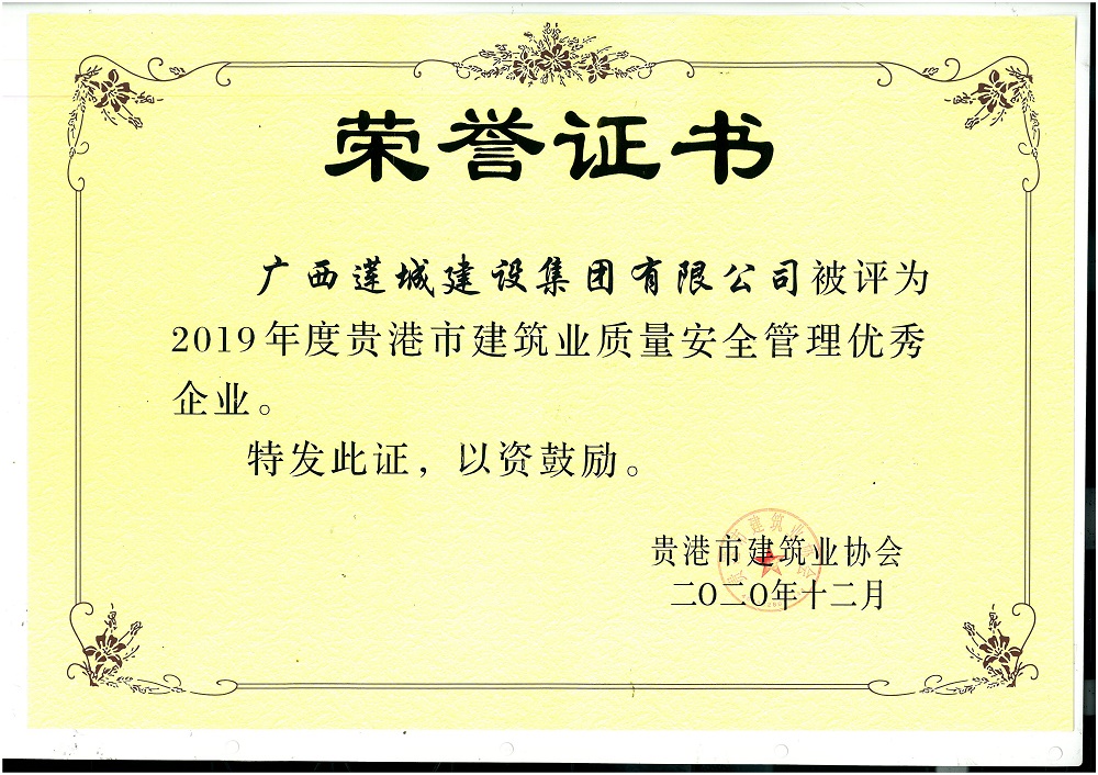 贵港市建筑业质量安全管理优秀企业