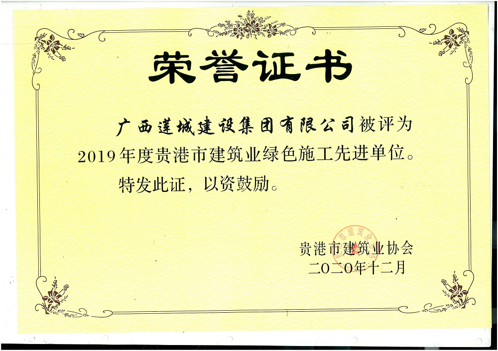 贵港市建筑业绿色施工先进单位