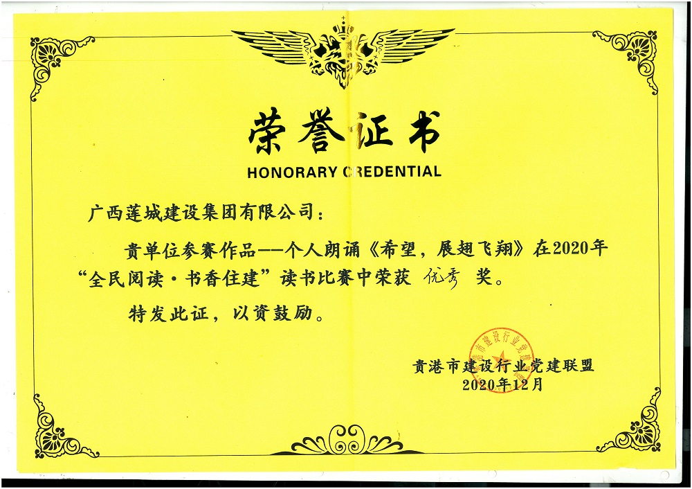 个人朗诵《希望,展翅飞翔》荣获优秀奖