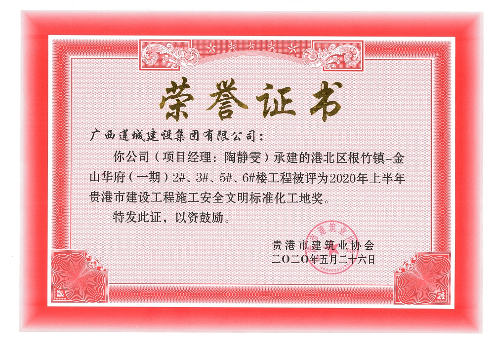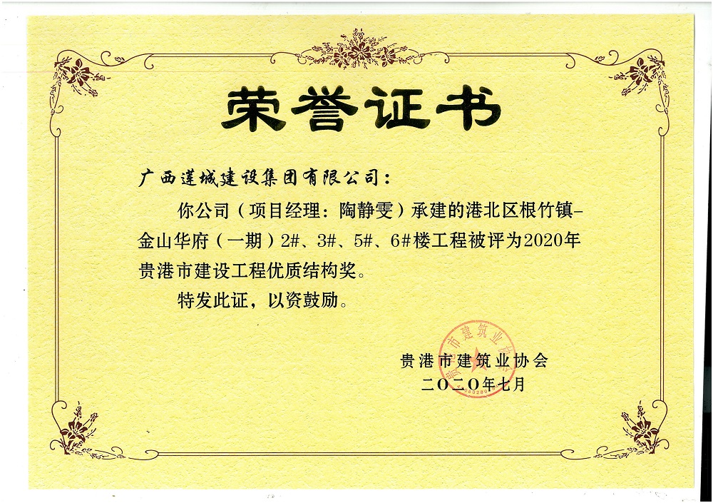 2020年贵港市建设工程优质结构奖港北区根竹镇-金山华府(一期)2#、3#、5#、6#楼工程,陶静雯