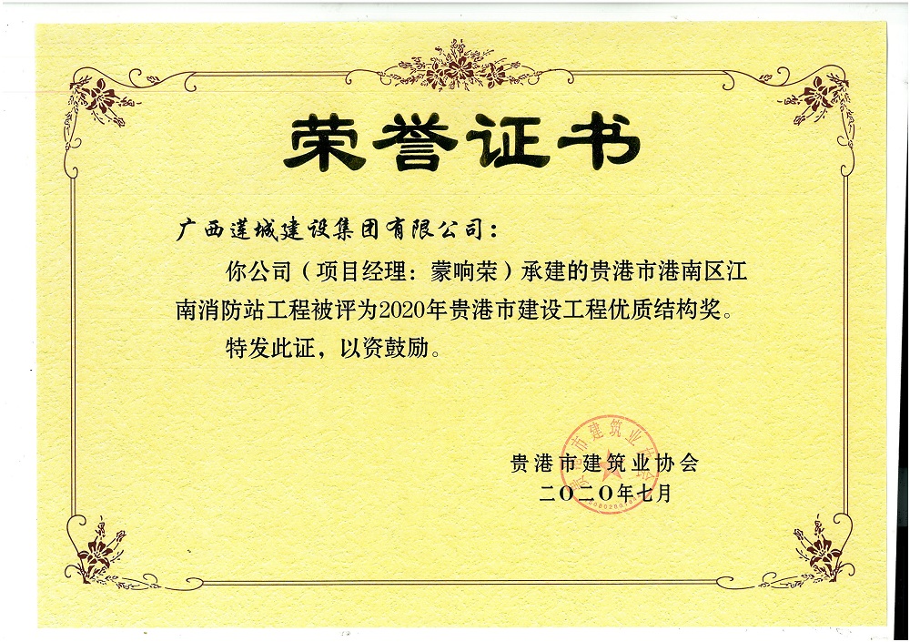 2020年贵港市建设工程优质结构奖贵港市港南区江南消防站工程,蒙响荣