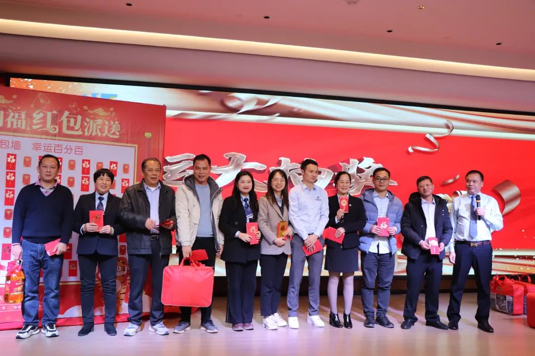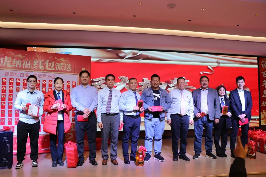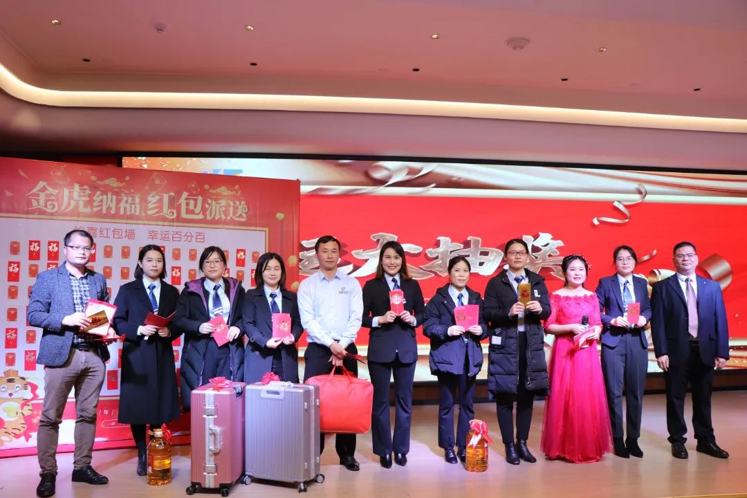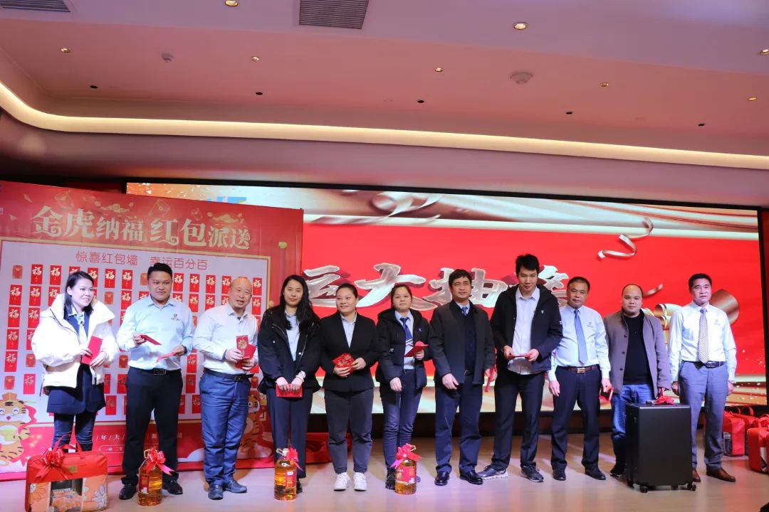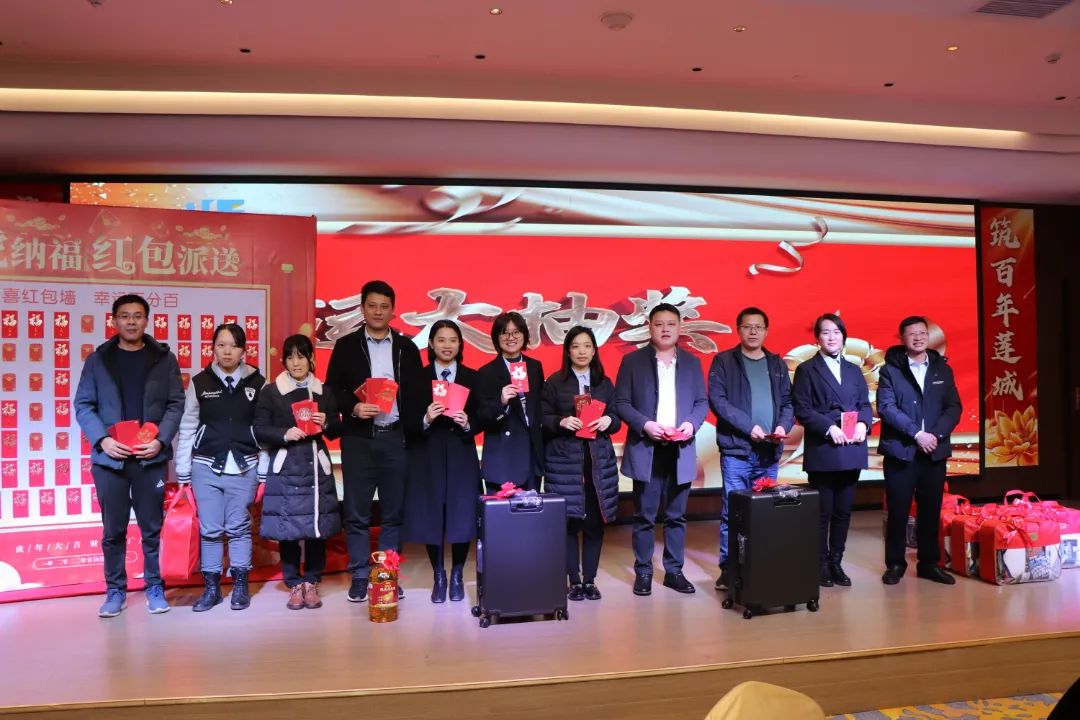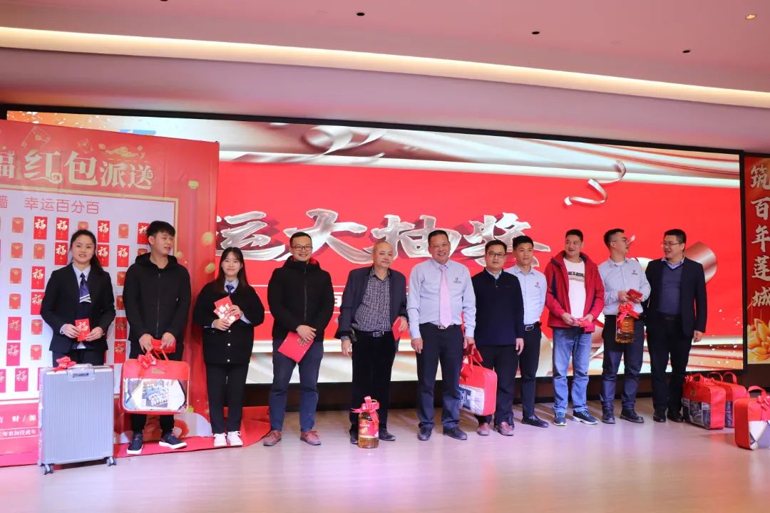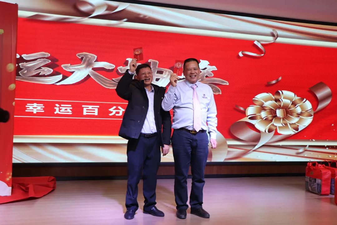 迎春晚宴及幸运大抽奖活动在集团公司董事长谭燕喜致祝酒词中拉开帷幕,大家相互举杯、互道祝福,现场气氛异常热烈。用餐20分钟后,最令大家期待的幸运大抽奖环节开始了。在陈梦华总经理和谭燕喜董事长的首轮抽奖下,一共产生了30名幸运儿,接着由各分管领导陆续抽出余下53名幸运儿。诸多奖项一一揭晓,不断将年会掀起高潮,笑声、掌声、欢呼声不时地在整场晚宴活动中荡漾。