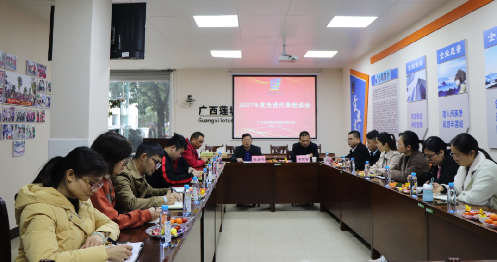 近日,集团公司在一楼会议室召开“2021年度先进代表座谈会”。集团公司总经理陈梦华参加并作了重要讲话。董事长谭燕喜,副总经理姜红华,总经理助理谢乔勇等领导参加。座谈会由总经理助理谢乔勇主持。