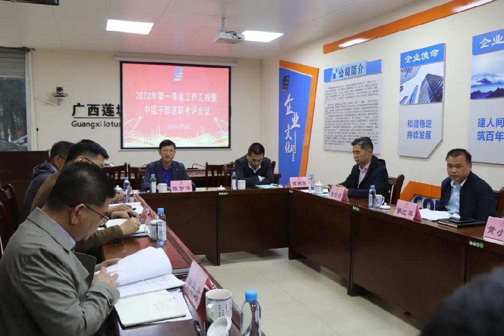 4月18日下午,集团公司在一楼会议室召开2022年第一季度工作汇报暨中层干部述职考评会议。总经理陈梦华出席会议并作重要讲话。领导班子成员谭燕喜、姜红华、黄添明、谭景腾、谢乔勇、梁惠侃等参加。会议由副总经理谢乔勇主持。