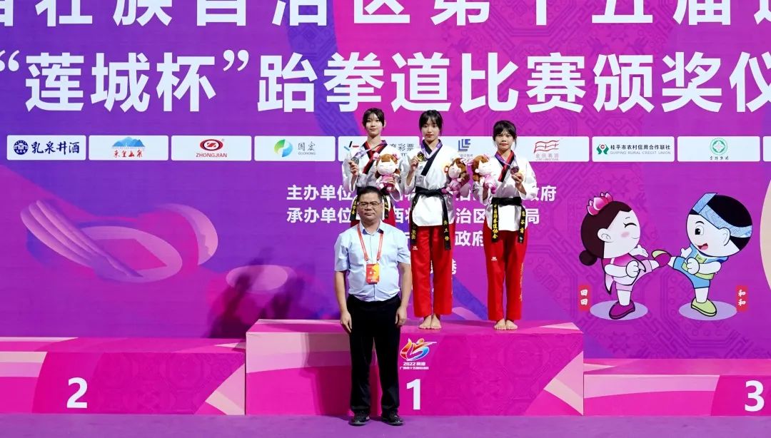 9月15日,自治区第十五届运动会“yp森林舞会多人版杯”跆拳道比赛在贵港市体育中心拉开帷幕,来自全区14个设区市共343名跆拳道选手参加比赛。集团公司副总经理谢乔勇出席颁奖仪式并为获奖选手颁奖。