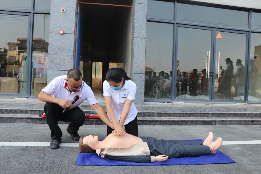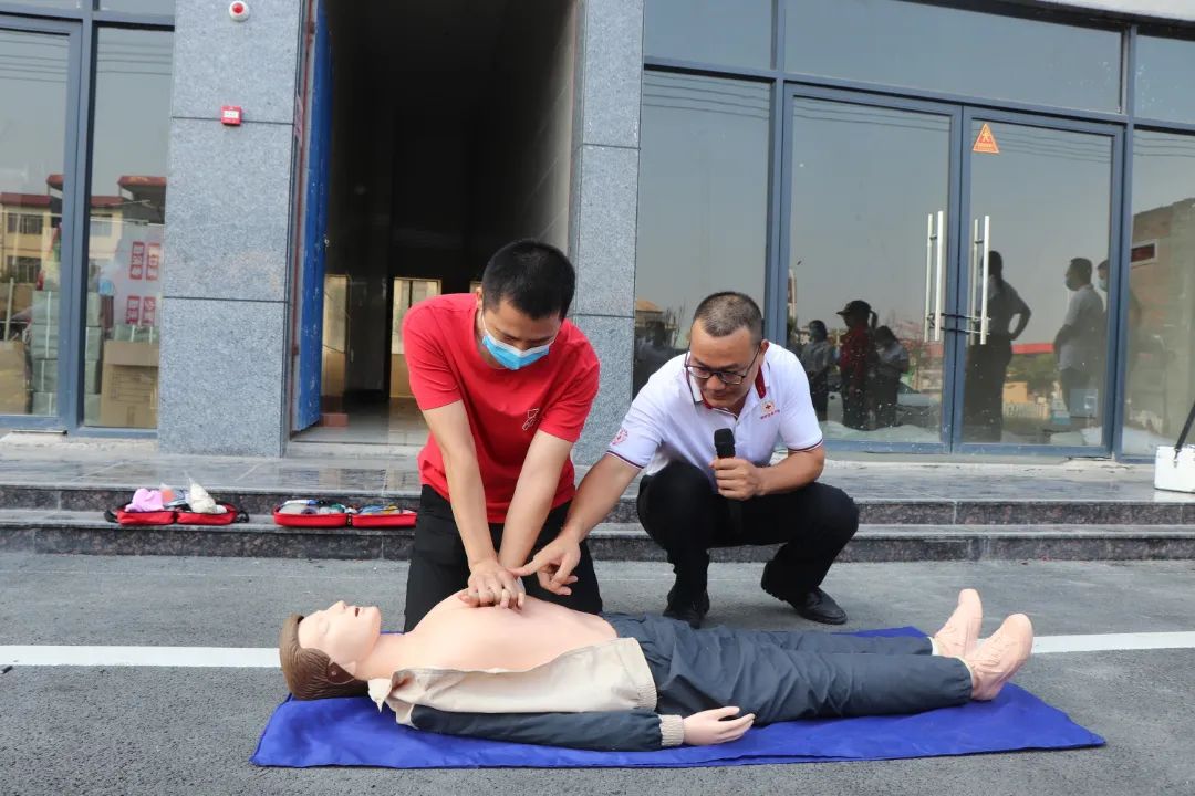 本次活动分为两个阶段。第一阶段,港南区红十字会对公司全员进行应急救护技能培训。实操过程中,老师一边念着“口诀”,一边通过“模拟人”向大家演示心肺复苏术、人工呼吸法等紧急救护技术,提醒大家要根据被救者的实际情况进行施救,避免造成“二次伤害”。现场的员工认真聆听,并积极参与到心肺复苏术实操演练中,有不规范的动作老师立即手把手进行了指导和纠正。