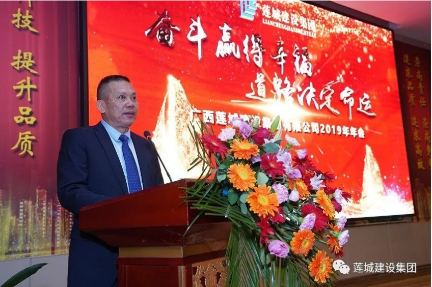 公司谭燕喜董事长首先作开幕致辞,他指出:2019年,公司签订合同额26.12亿元,完成施工产值31亿元,实现税额1.83亿元,成为了贵港市港南区排名第一的纳税大户,这是公司把握市场命脉、整合内外部资源、创新和健全管理模式、完善服务体系的成绩体现。谭董的致辞,饱含了公司董事会对每一位员工及其家属的深情厚谊,饱含了公司董事会对关注和关心公司发展的每一位社会贤达的由衷谢意,饱含了公司董事会对公司现在及未来的全力支持和殷切期望!