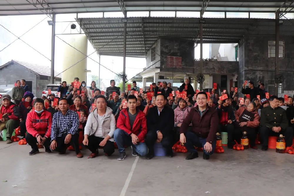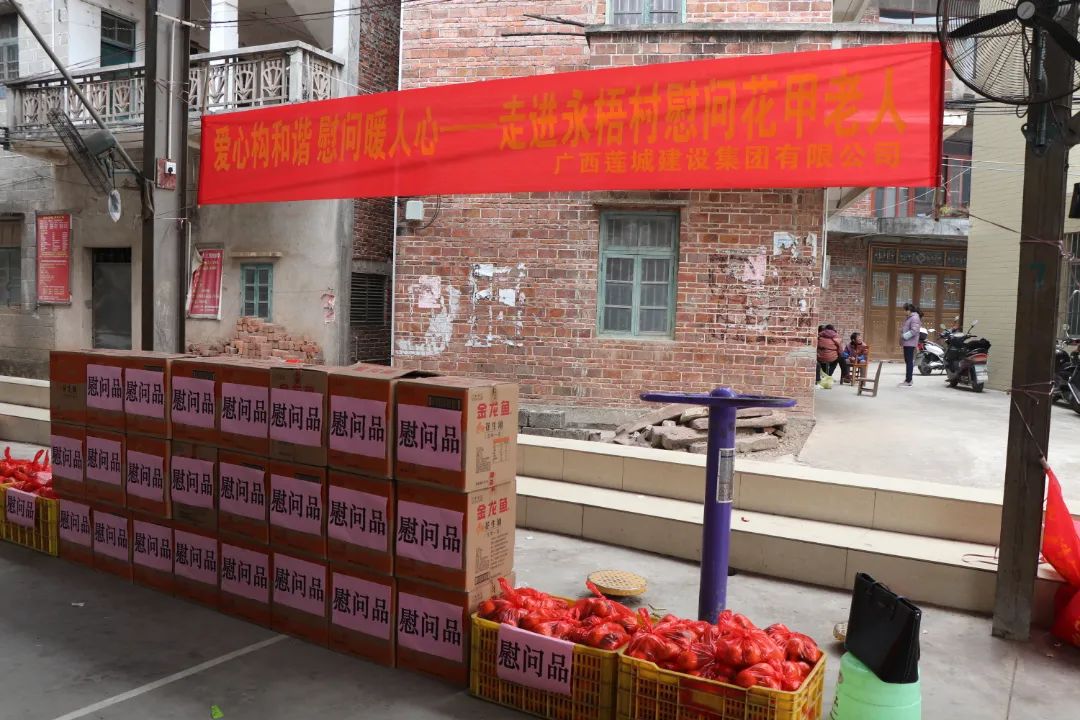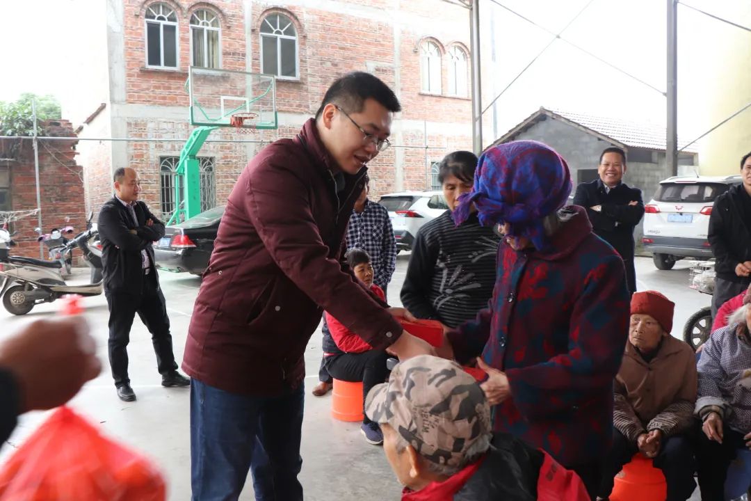1月8日上午,集团公司董事长谭燕喜,副总经理、安全总监谭景腾带领员工代表前往桥圩镇永梧村,开展“爱心构和谐 慰问暖人心——走进永梧村慰问花甲老人”活动。