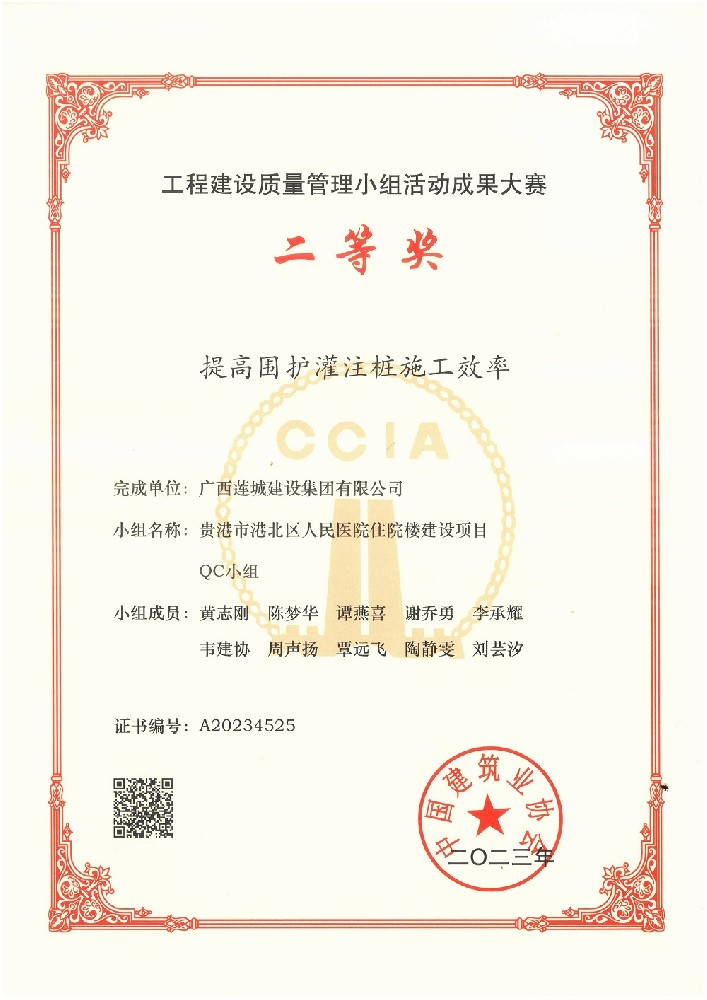 提高围护灌注桩施工效率,QC二等奖,贵港市港北区人民医院住院楼建设项目